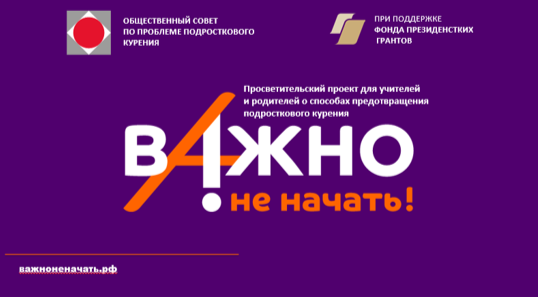 В этом учебном году в нашей школе пройдут занятия «Курс на здоровье».Они являются частью большого федерального просветительского проекта для учителей и родителей о способах предотвращения подросткового курения «Важно не начать!» Занятия пройдут в 6 – 11 классах и будут посвящены продвижению среди обучающихся преимуществ здорового образа жизни и знакомству с конструктивными моделями поведения в ситуациях, где есть риск вовлечения в курение. Просим вас принять участие в этом важном направлении воспитательной работы с нашими детьми. Как это можно сделать? По этой ссылке вы можете попасть на сайт проекта важноненачать.рф в раздел «Родителям»: https://важноненачать.рф/to-parents/ . В нем есть много полезной и ценной для вас информации, в частности о том, как защитить подростков от курения и вейпинга и прививать ему основы здорового образа жизни. Также рекомендуем вам ознакомиться с памяткой для родителей https://disk.yandex.ru/d/ZccUOi3GyOuRDA и материалами социальной рекламы проекта https://disk.yandex.ru/d/Dwzi6kUInyW45A